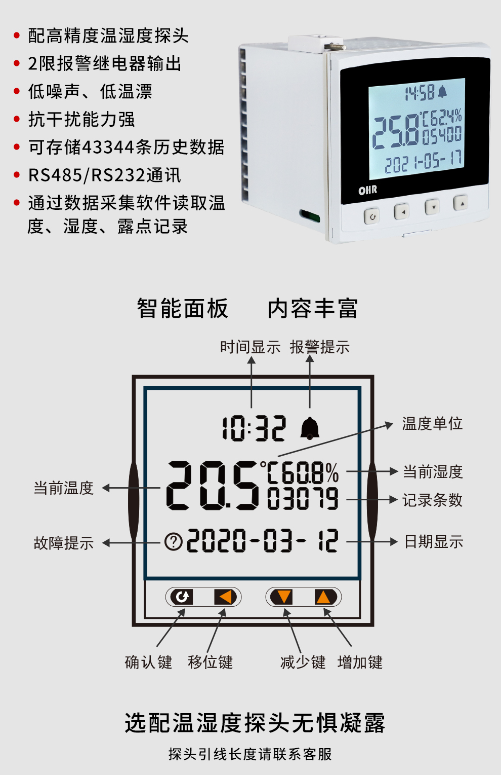 • OHR-WS40R系列盤裝式溫濕度記錄儀采用高精度的采集電路及進口傳感器,對環境的溫濕度進行實時監測、報警與記錄。大屏幕液晶顯示器,實時顯示溫濕度、時間與記錄信息;帶串行通訊接口,實現數據通訊;通過配套的上位機軟件可查看數據詳情。該記錄儀主要用于監測記錄食品、醫藥品、化學用品等產品在存儲過程中的溫濕度數據,廣泛應用于倉儲、冷藏庫、實驗室、養殖孵化、大棚種植等。